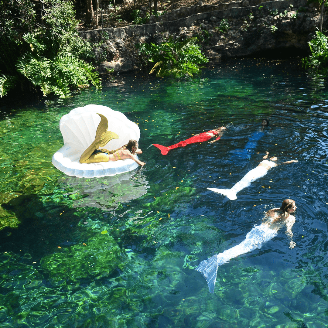 Professional mermaids trained as lifeguards, synchronized swimming instructors and aqua fitness trainers lead the transformation from landlubber to mystical sea creature. A combination of synchronized swimming and regular swimming techniques will help you to propel through the water like a pro.